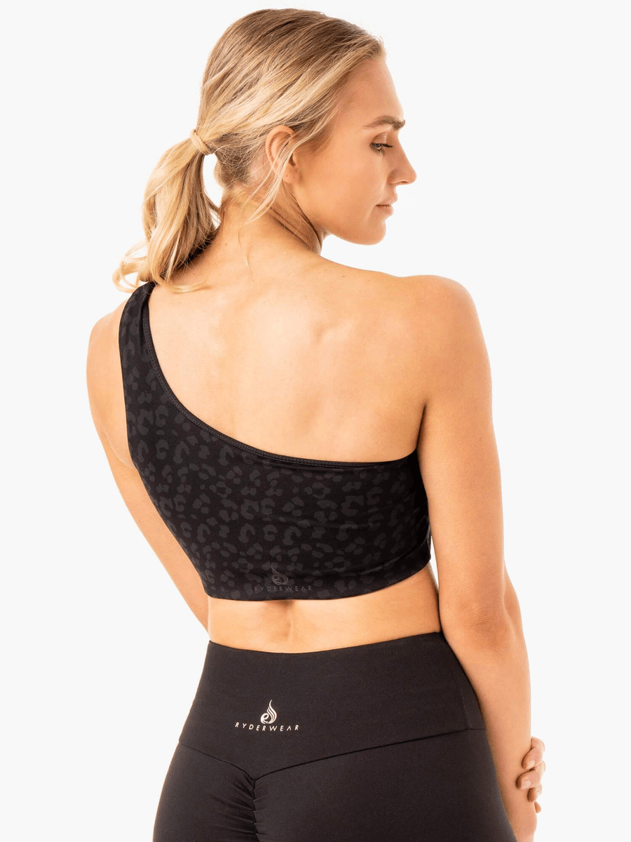 Ryderwear Adapt One Shoulder Sports Bra - Black Leopard