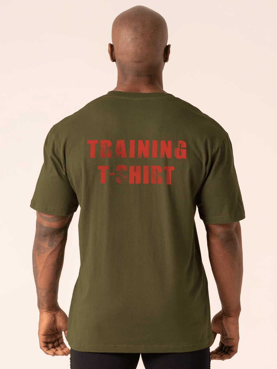 The Ryderwear Training T-Shirt - Olive is designed to keep you comfortable and stylish. Its oversized fit allows for maximum movement, while the contrast print adds a unique touch to your workout wardrobe. Whether you're hitting the weights or running errands, this tee has got you covered.