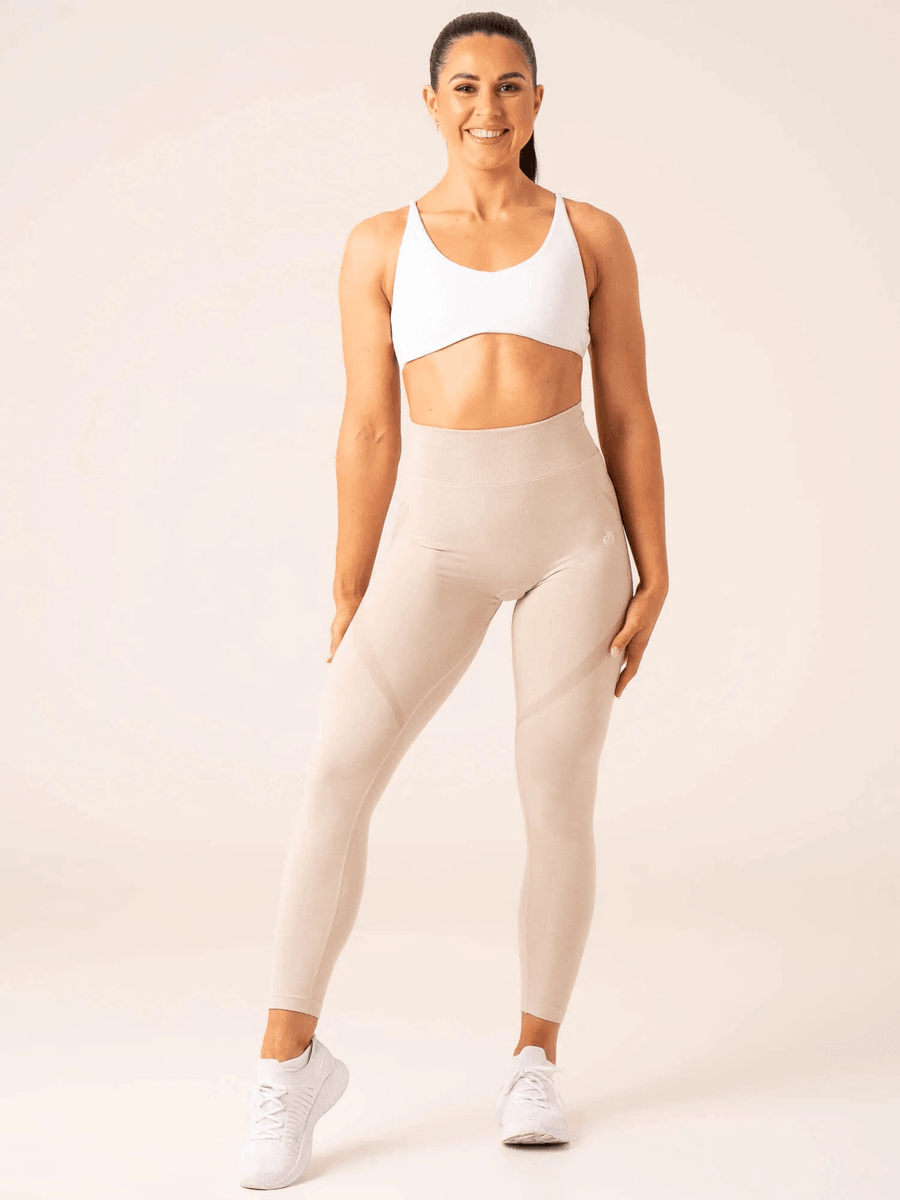 de ryderwear Essentials Seamless Leggings - Stone Marl Zijn Ontworpen Om Met Je Mee Te Bewegen, Of Je Nu Een Hiit-sessie Doorknalt Of Thuis Ontspant. De Ribbelige Naadloze Stof Zorgt Voor Duurzaamheid En Flexibiliteit, Zodat Je Je Kunt Concentreren Op Je Prestaties Zonder Afleidingen.