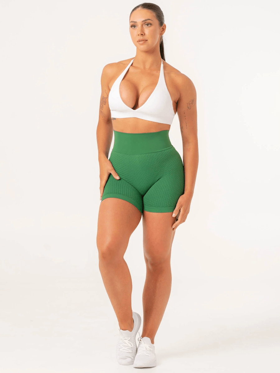 Elevate your workout wardrobe with the Ryderwear Honeycomb Scrunch Seamless Shorts - Fern Green. Designed for performance and style, these shorts are your new go-to for both training sessions and casual outings.