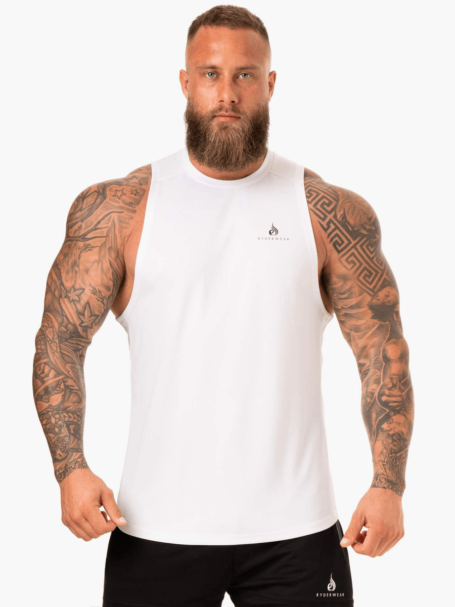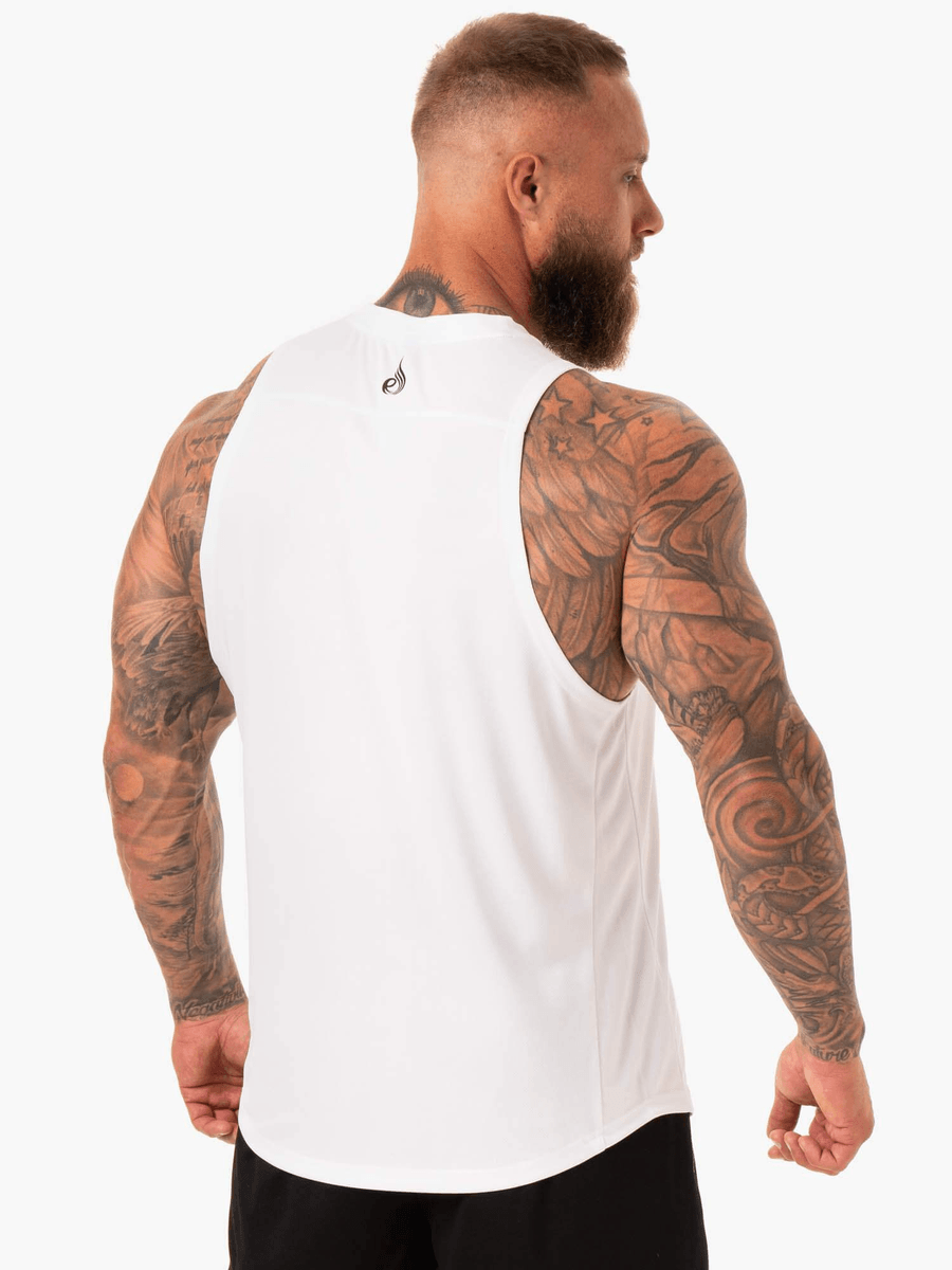 Don't settle for ordinary workout gear. Upgrade your training experience with the Ryderwear Lift Mesh Baller Tank - White today and feel the difference in your performance!