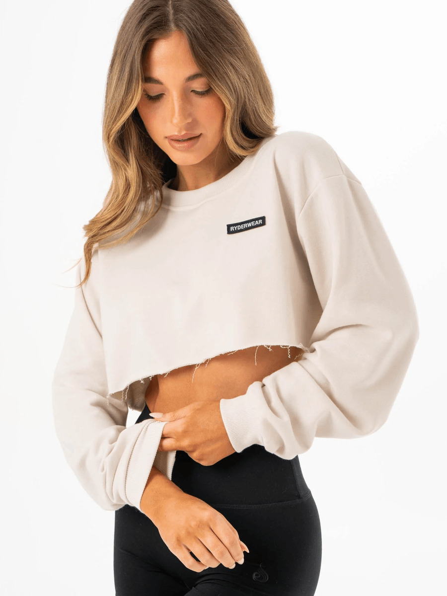 Elevate your training and lifestyle wardrobe with the Ryderwear Cropped Sweater - Latte. This stylish and versatile cropped sweater combines comfort and fashion, making it a must-have for any active individual.