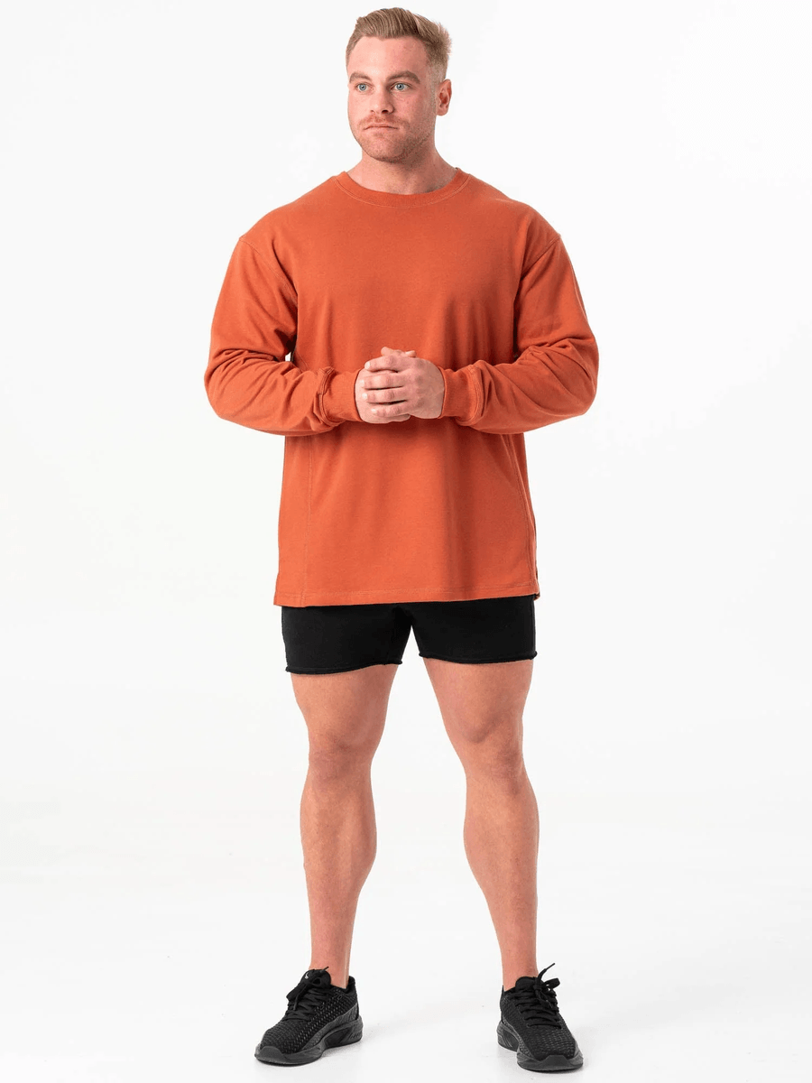 The Ryderwear Force Crew Neck - Terracotta is designed for those who value both style and functionality. With its lightweight feel and contemporary design, this crew neck is perfect for layering or wearing alone. Whether you're hitting the gym or running errands, its rib cuff sleeves and relaxed fit ensure you stay comfortable and fashionable.
