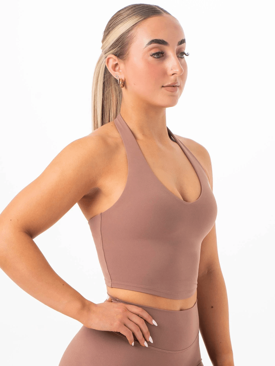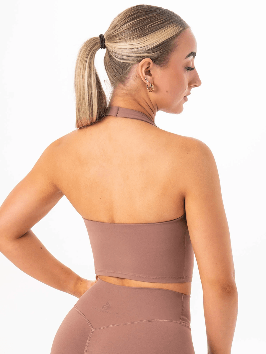 Entdecken Sie Die Perfekte Mischung Aus Stil Und Funktionalität Mit Dem Ryderwear NKD Halter Shelf Tank - Mocha. Dieses Schicke, Verkürzte Tanktop Wurde Entwickelt, Um Den Halt Zu Bieten, Den Sie Benötigen, Während Sie Während Ihres Trainings Modisch Bleiben.