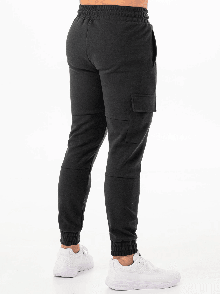 The Ryderwear Tech Cargo Pant - Black is crafted from a high-quality blend of 65% polyester and 35% cotton, ensuring durability and softness. Whether you're hitting the gym or relaxing on rest days, these cargo pants are designed to keep you comfortable and stylish. The adjustable waist and practical pockets make them perfect for any active lifestyle.