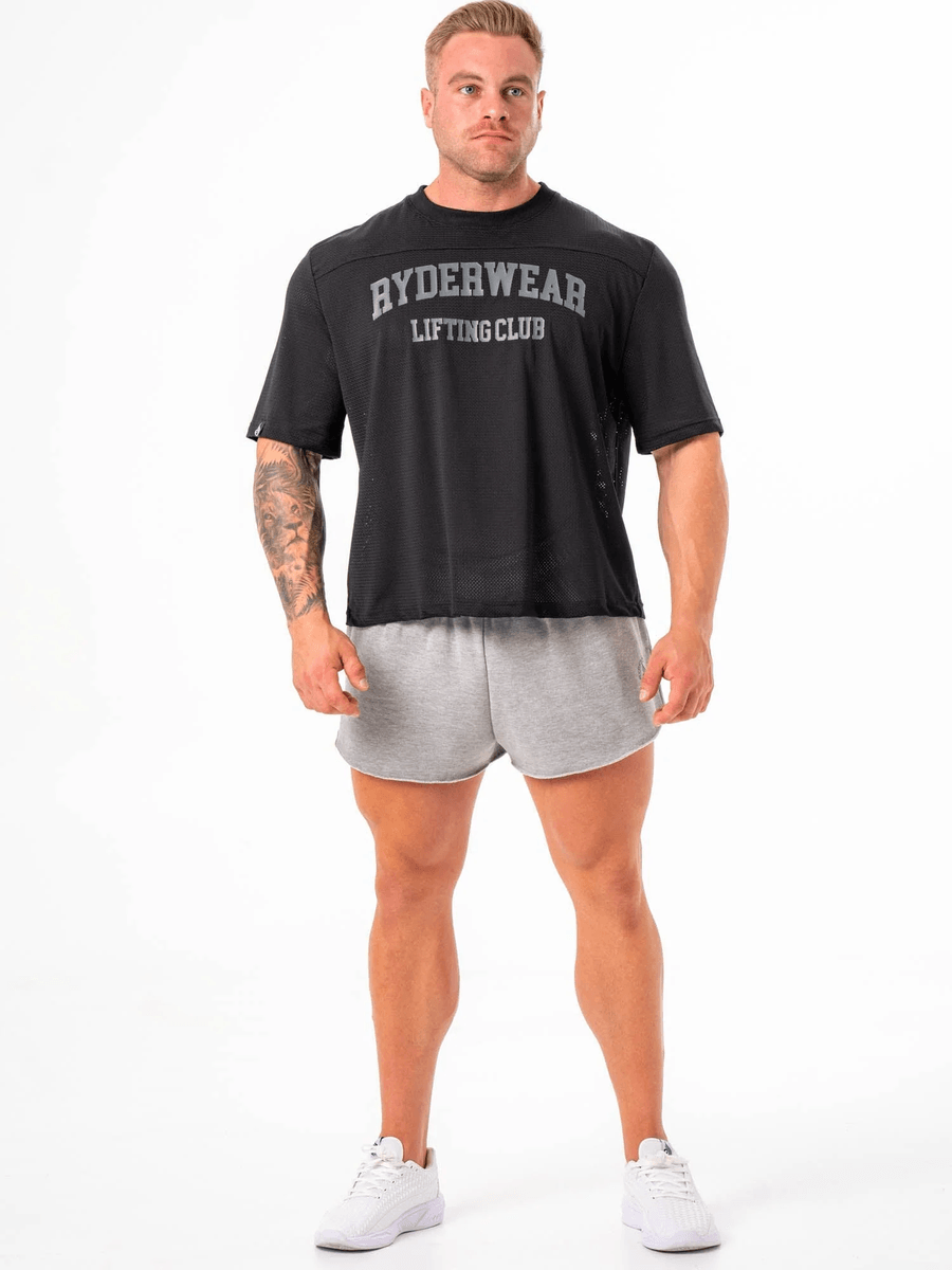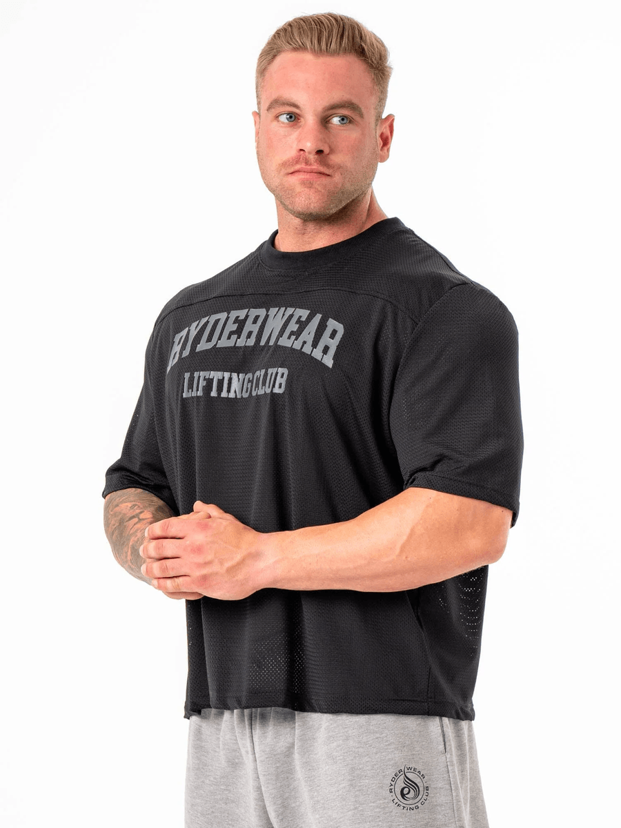 The Ryderwear Mesh Flex T-Shirt - Black features a relaxed oversized fit, ensuring you can move freely during any activity. Made from a lightweight combination of 90% nylon and 10% spandex, this t-shirt offers exceptional stretch and support. The breathable mesh fabric keeps you cool, while the striking Ryderwear logo adds a touch of style.