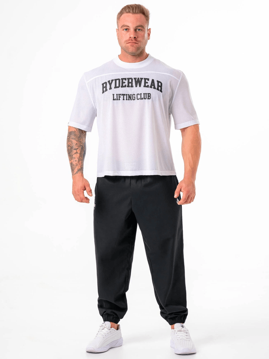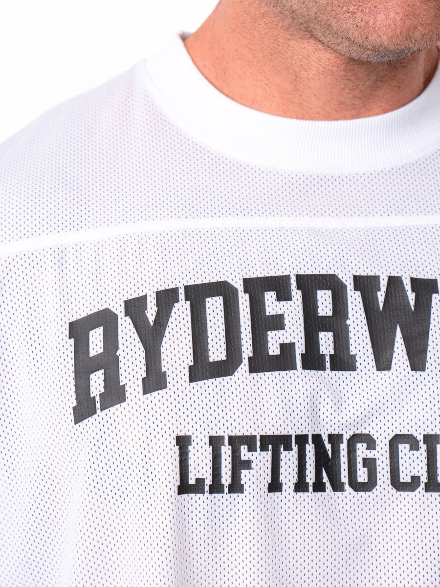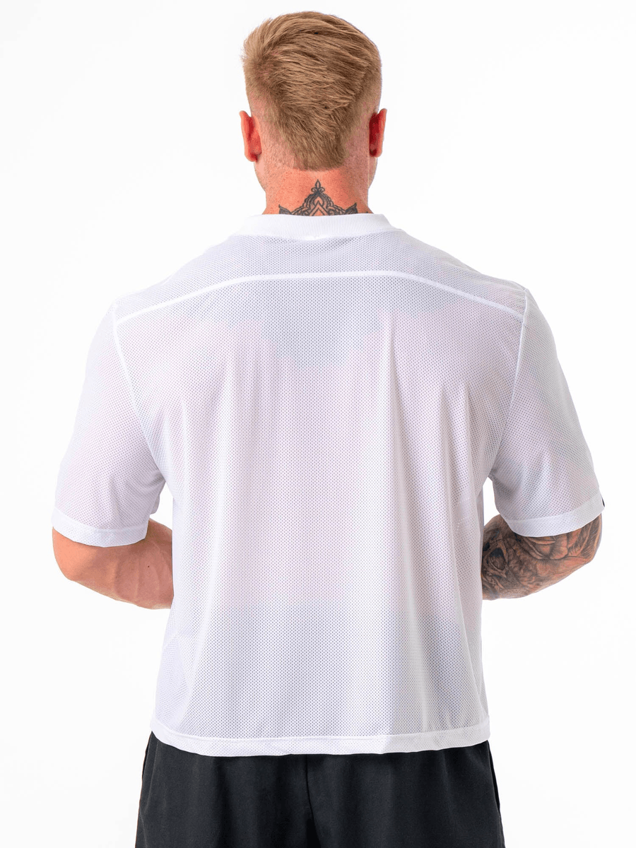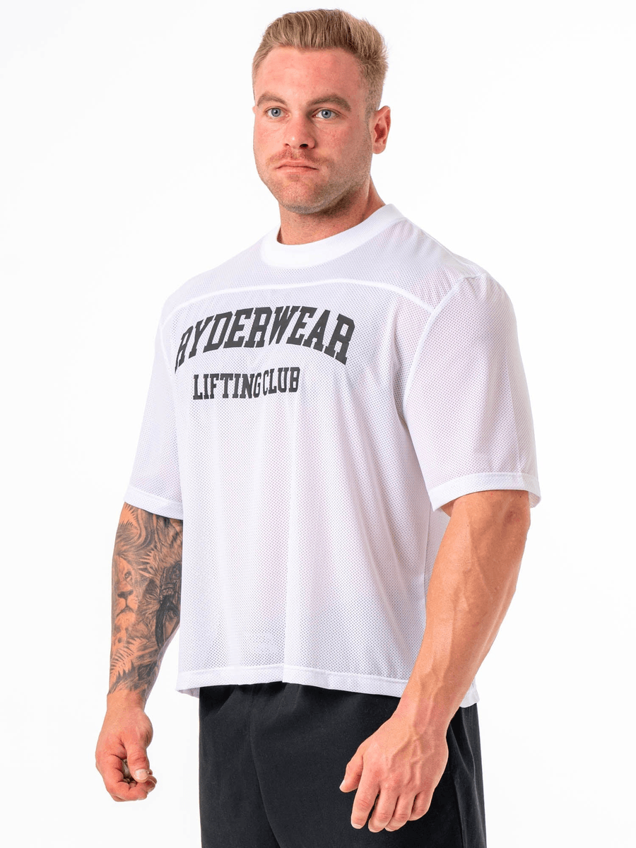 The Ryderwear Mesh Flex T-Shirt - White combines functionality with modern aesthetics. Whether you're hitting the gym or relaxing at home, this t-shirt provides the perfect balance of style and practicality. The breathable mesh fabric ensures you stay cool, while the oversized fit allows for easy layering over your favorite workout gear.