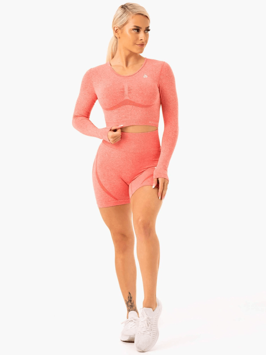 Elevate your workout wardrobe with the Ryderwear Staples Seamless Long Sleeve Top - Peach Marl. Designed to move with you, this top is your ultimate gym companion for both performance and style.