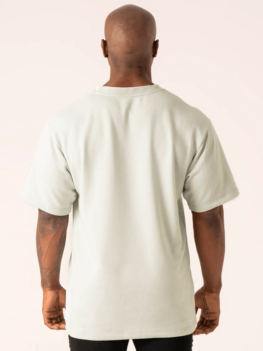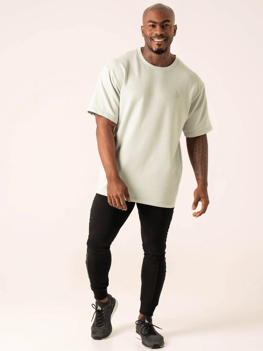 Elevate your casual style with the Ryderwear Throwback Oversized Fleece T-Shirt in Seafoam. This trendy tee combines comfort and style, making it the perfect addition to your workout or everyday wardrobe.
