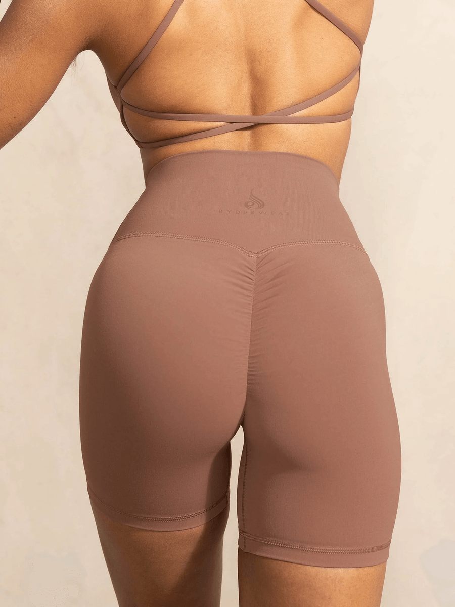Discover Ultimate Comfort with Ryderwear NKD High Waisted Scrunch Shorts - Mocha