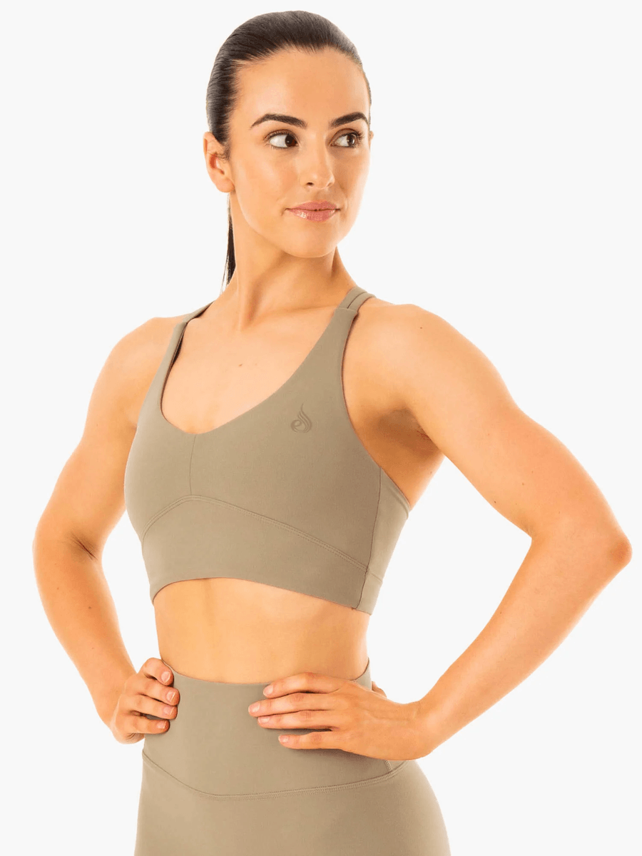 Unleash your potential with the Ryderwear NKD Refine Sports Bra - Khaki. Designed for the modern athlete, this sports bra combines luxe comfort with high-performance features, ensuring you look and feel your best during any workout.