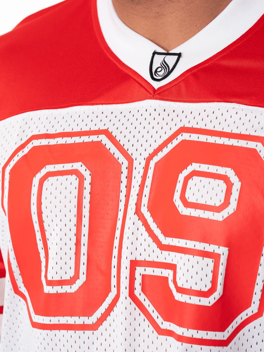 Elevate your training wardrobe with the Ryderwear Varsity Jersey - Red. This stylish oversized jersey t-shirt combines comfort and performance, making it a must-have for every fitness enthusiast. Designed to stand out, it features mesh fabric for breathability, ensuring you stay cool during your workouts.