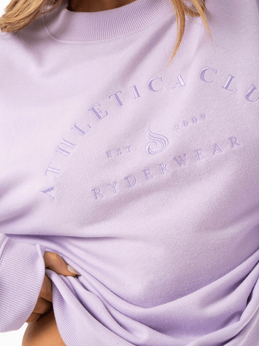 The Ryderwear Tempo Sweater - Lilac is crafted from a lightweight, unbrushed fleece fabric that feels soft against your skin. With its embroidered front graphics, this sweater stands out while remaining effortlessly stylish. The relaxed fit allows for all-day comfort, making it a must-have for your casual wardrobe. Whether you're lounging at home or hitting the streets, this sweater pairs perfectly with your favorite jeans or leggings.
