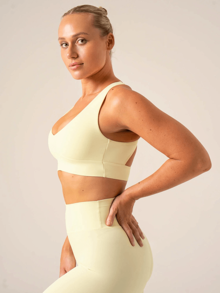 Experience unparalleled comfort and support with the Ryderwear NKD Embody Sports Bra in vibrant lemon. Tailored for active individuals, this sports bra is perfect for any workout, from yoga sessions to high-intensity training.