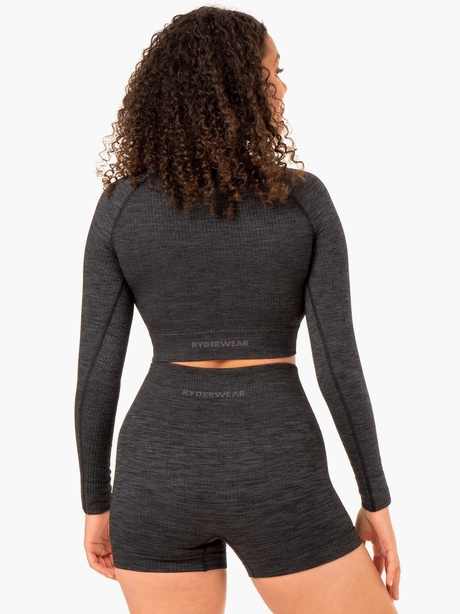 Ryderwear Rib Seamless Long Sleeve Top - Black Marl