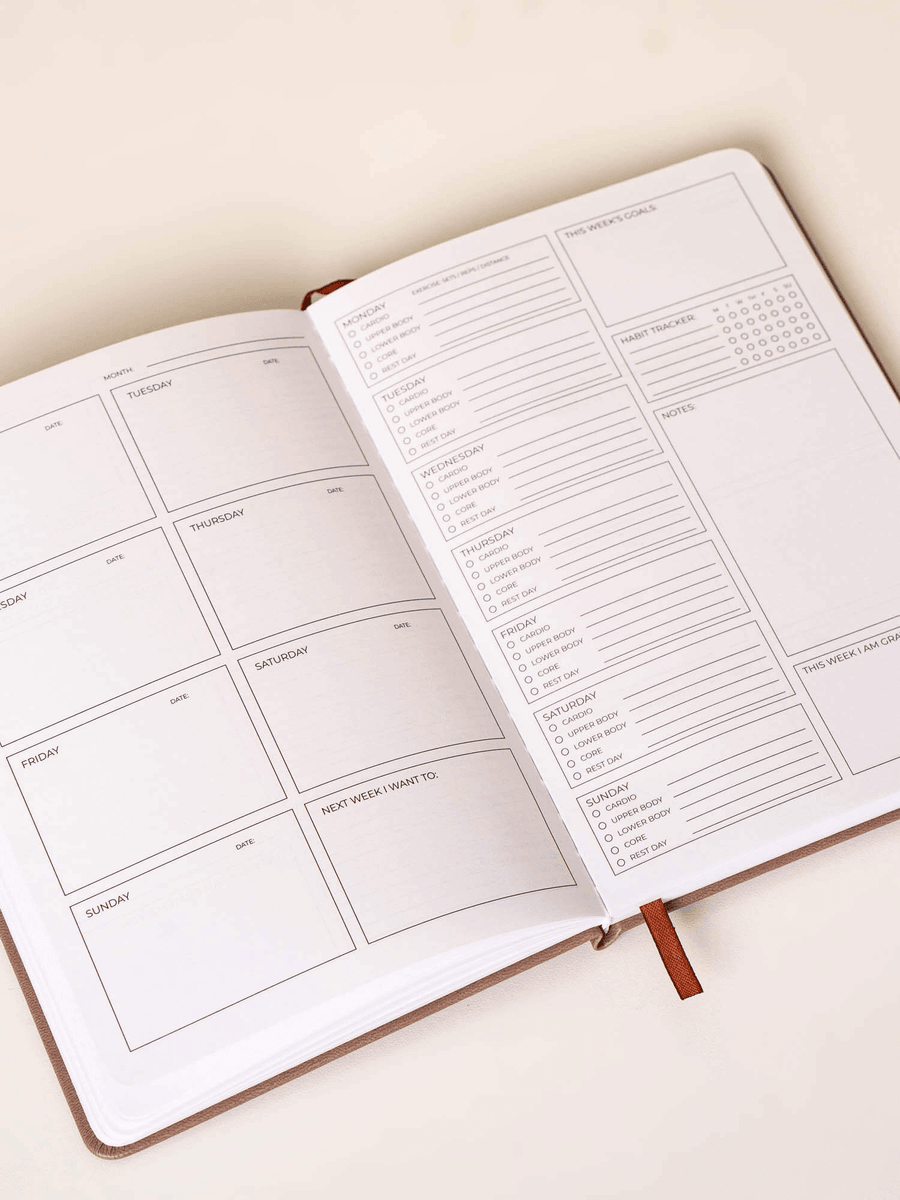 The Ryderwear Weekly Planner - Taupe is more than just a planner; it’s your personal assistant for productivity. With 120 pages designed for daily planning, it includes prompts that help you identify priorities and manage your time effectively. The weekly habit and fitness trackers empower you to stay committed to your wellness journey. Plus, reflection prompts encourage mindfulness and self-assessment, making it an invaluable tool for personal development.