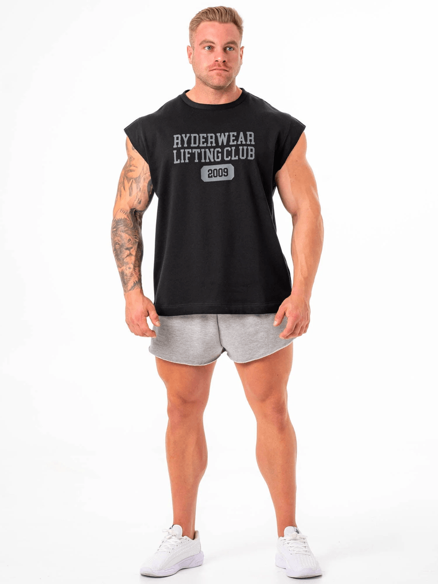 The Ryderwear Cut Off Muscle Tank - Black is crafted from unbrushed fleece fabric, ensuring a soft feel against your skin. Whether you're hitting the gym or lounging at home, this tank offers versatility and style. With its relaxed fit, it allows for unrestricted movement, making it ideal for intense workouts or casual wear.