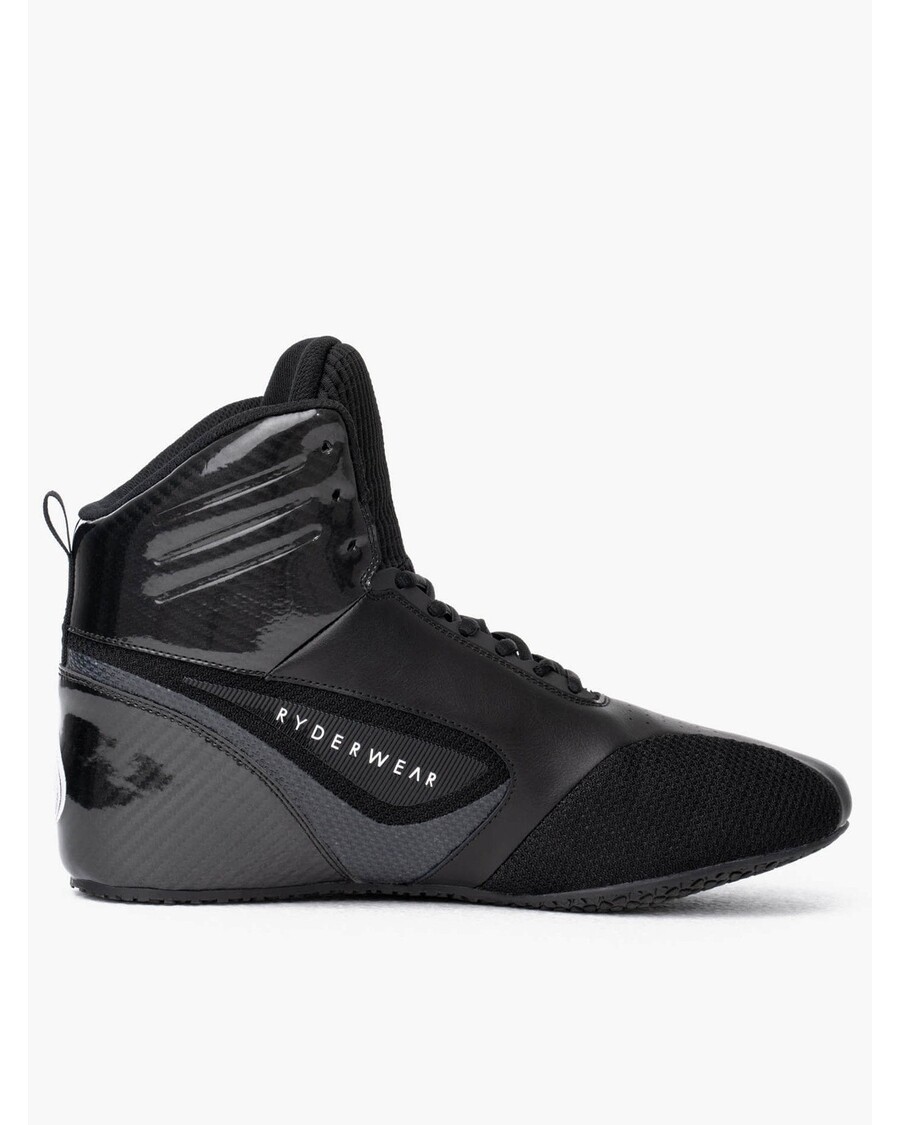 take your training to the next level with the d-mak carbon fibre by ryderwear. the d-mak is the ultimate hardcore lifting shoe, offering a flat, thin sole for unparalleled support and correct lifting form. with the functionality of our original lifting shoes fused with a futuristic design, this is the pro bodybuilders shoe of choice, boasting modern tech patterned fabrics and carbon fibre detailed vinyl panels. with a high top design, these men’s lifting shoes offer essential support on leg day, while allowing you to get closer to the ground for maximum power and drive in your lifts.