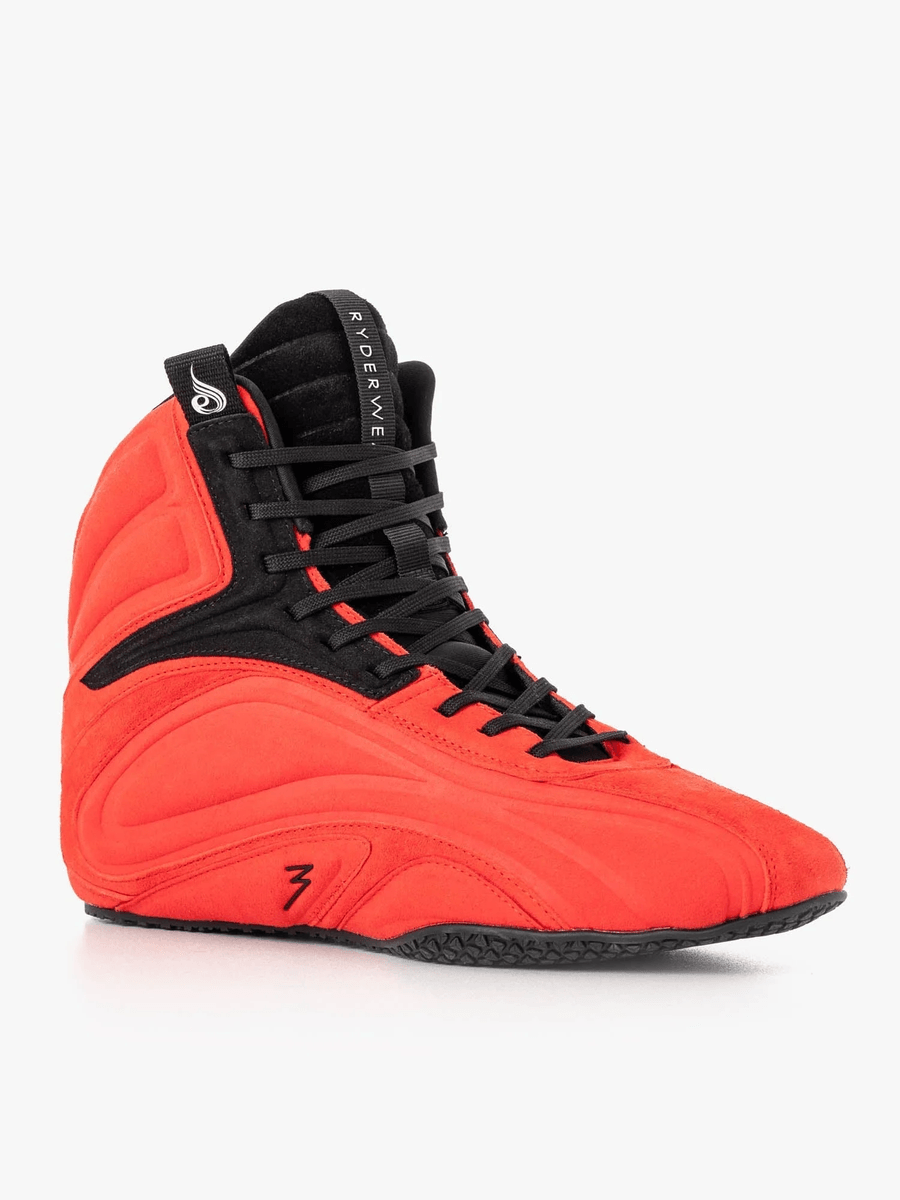 Step into the future of bodybuilding footwear with the Ryderwear D-Mak 3 - Red. This revolutionary high-top shoe is engineered for serious lifters who demand precision and stability in their training. With its signature flat sole, you can maintain impeccable lifting form, ensuring that every rep counts.
