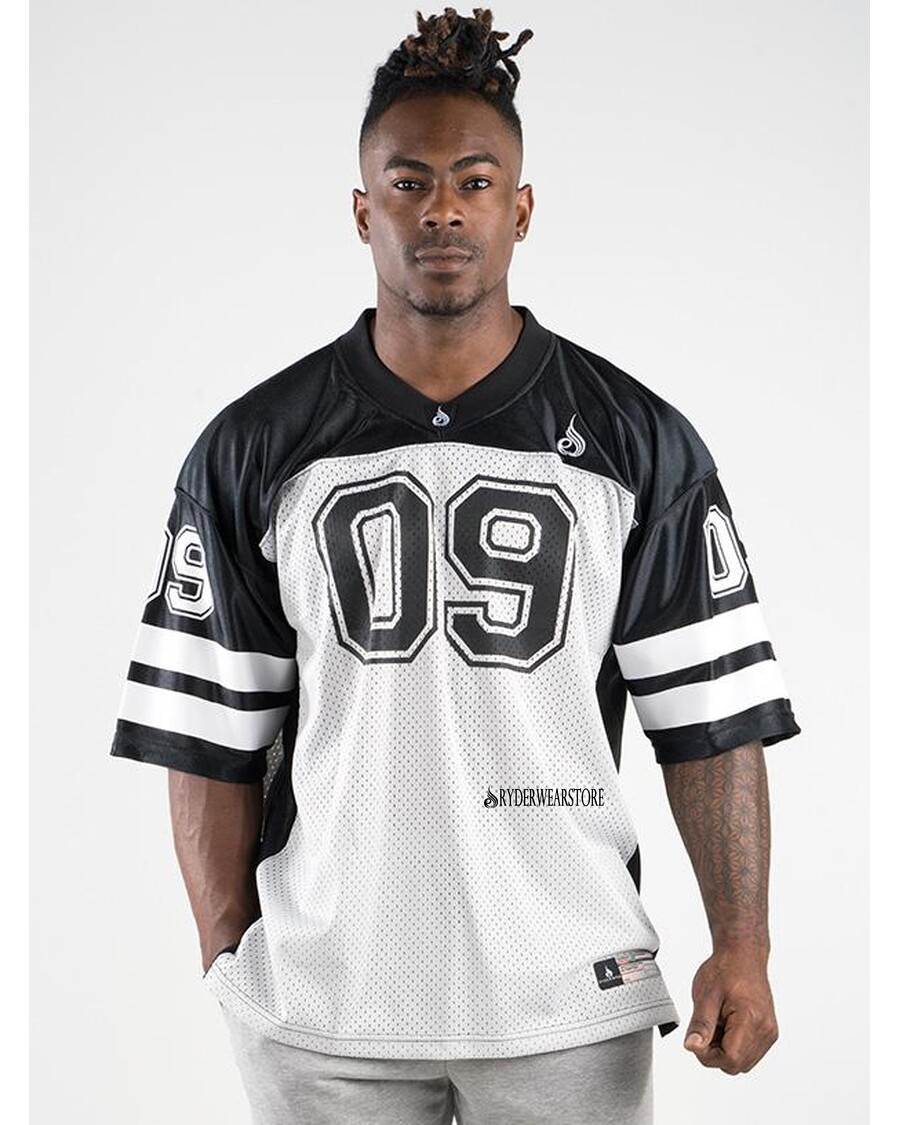 Náš Pánsky Univerzitný Dres Je Tričko V Nadmernom štýle, Ktoré Obsahuje Sieťovinu, Názov Tímu, číslo A Univerzitné Pruhy.