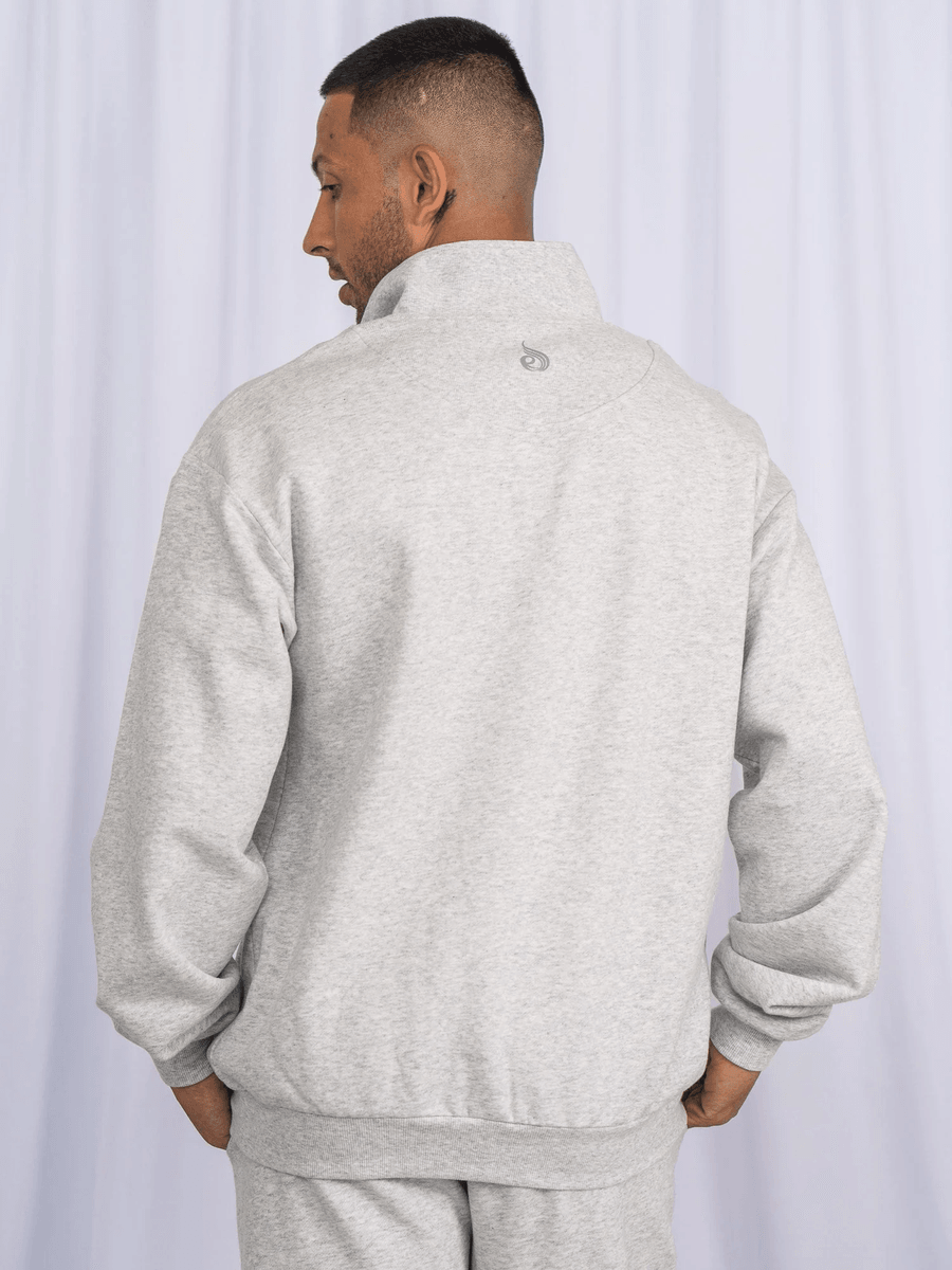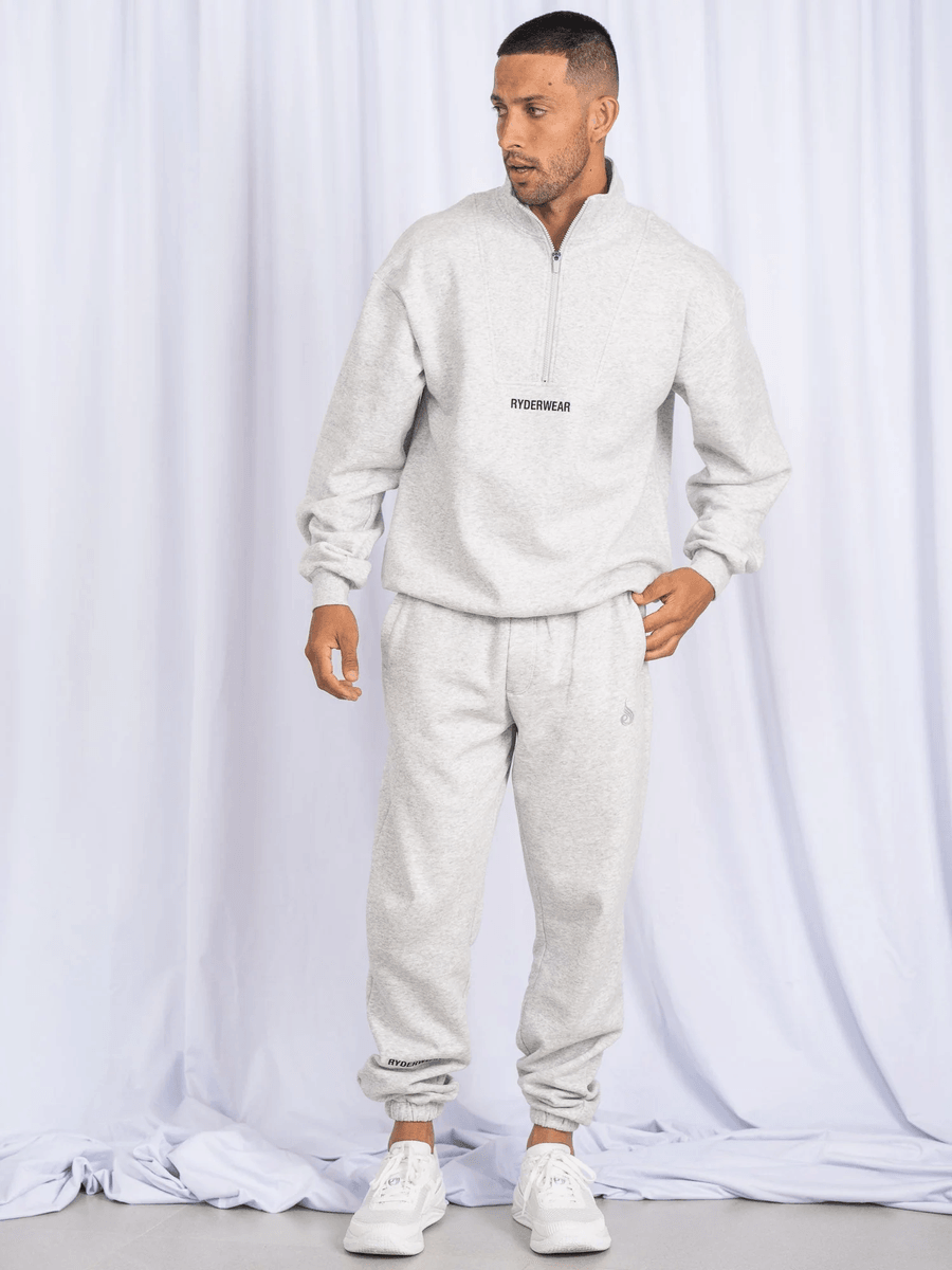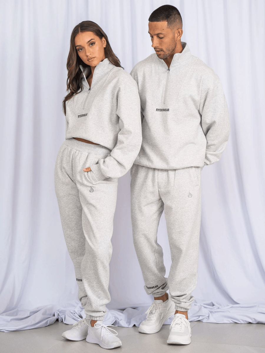 The Ryderwear Unisex Half Zip Jumper - Snow Marl is crafted from an exceptional blend of 80% cotton and 20% polyester, ensuring durability and softness. The material features a brushed fleece interior that offers superior warmth, making it an essential addition to any wardrobe. With a relaxed oversized fit, this jumper not only looks great but also allows for unrestricted movement, making it suitable for intense training or lounging.