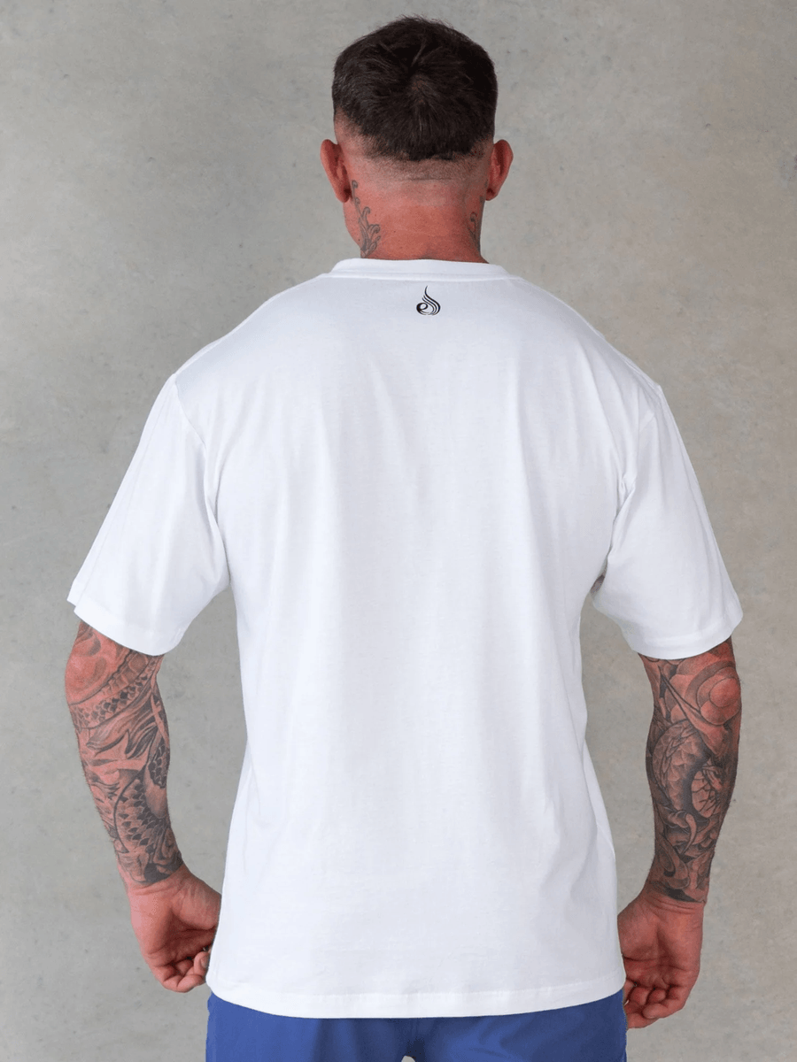The Ryderwear You vs You Oversized T-Shirt - White is crafted for individuals who embrace a motivational mindset. With a relaxed fit, this t-shirt allows for maximum movement, making it ideal for high-intensity workouts, gym sessions, or simply lounging at home. The model is 193cm tall and typically wears a size XL, showcasing the perfect oversized fit that this shirt offers.