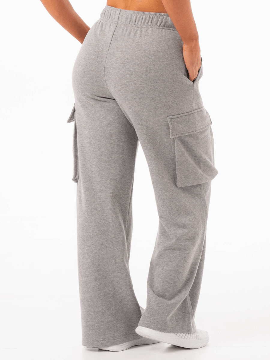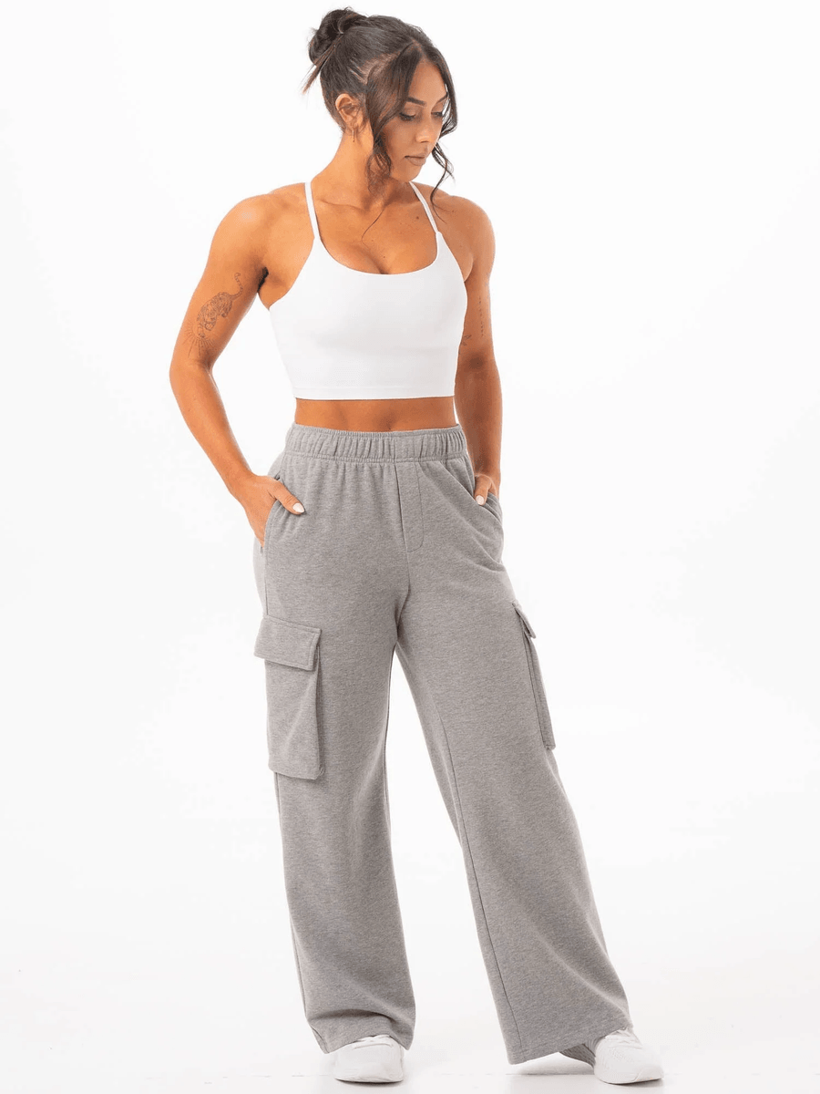 The Ryderwear Cargo Track Pant - Grey Marle combines functionality with fashion. Designed to be paired with your favorite loungewear or layered over a seamless set, these pants enhance your casual look effortlessly. The oversized fit and wide-leg silhouette provide a relaxed vibe, making them perfect for any occasion.