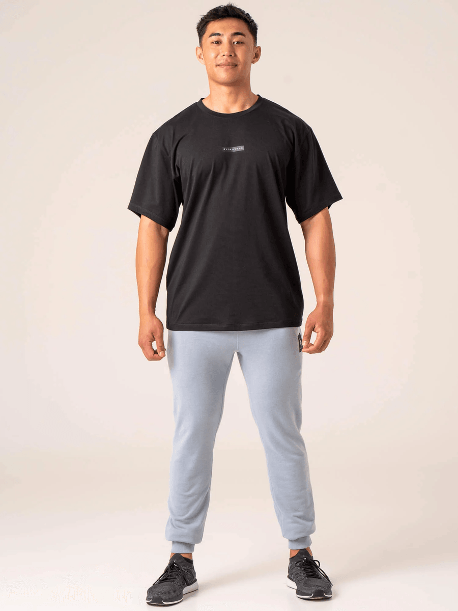 The Ryderwear Terrain Track Pants - Ice Blue feature a ribbed waistband and cuff that provide a secure fit. With an inseam of 71cm, these pants are perfect for both high-intensity training sessions and casual outings. Made from a premium blend of 65% polyester and 35% cotton, they offer durability and breathability.