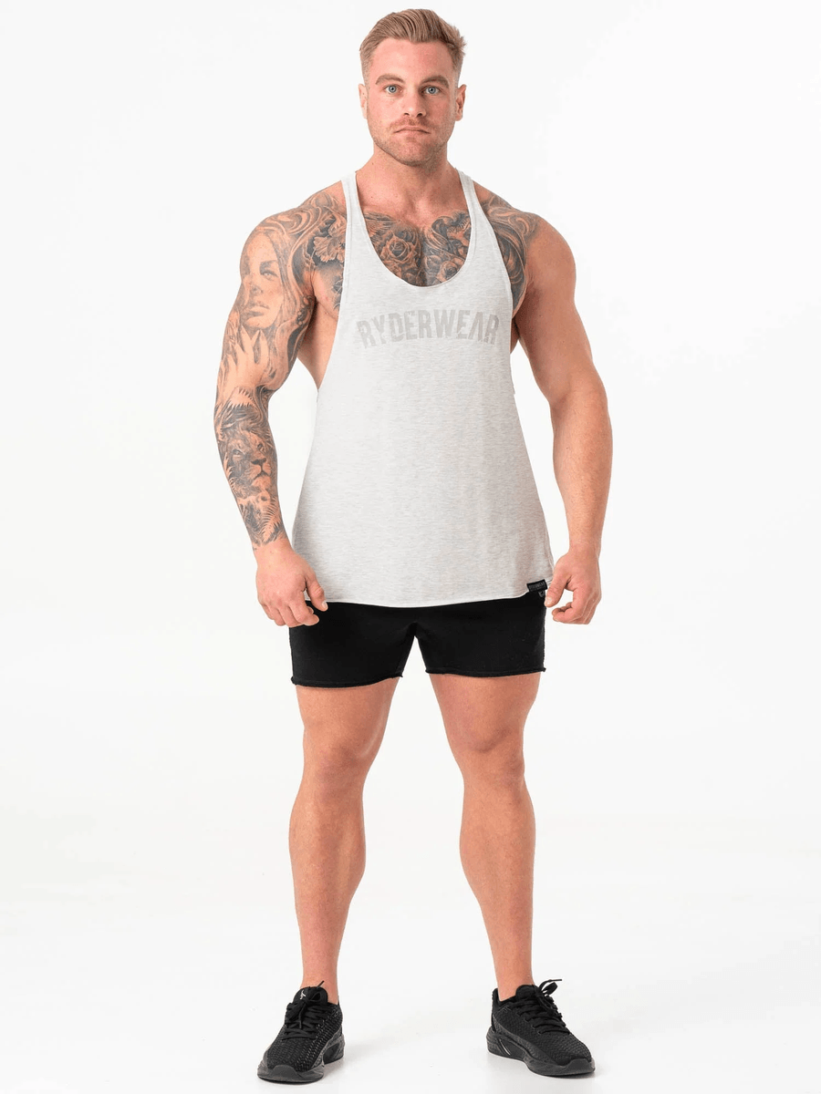 Unleash your potential with the Ryderwear Force Stringer in Chalk Grey Marl. This stylish gym wear is designed to elevate your training experience, offering both comfort and functionality.
